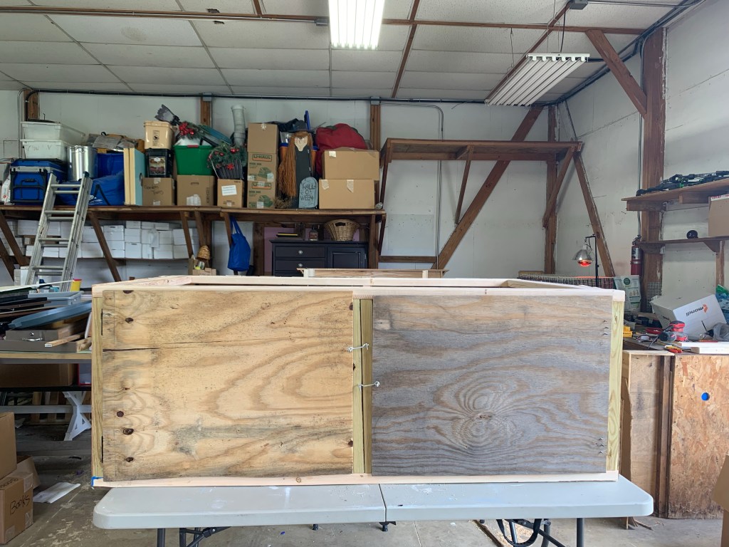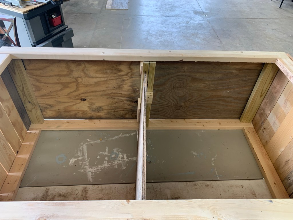 So far I think this is my favorite brooder. This will be my second year using it. Once I got frustrated with the kiddie pool, I looked around for scrap wood and build a more permanent brooder. It works pretty great, but it is heavy. I had a heck of a time moving it to it’s forever spot in our back garage. That being said, it only took about 3 hours to build and keeps the chicks in. I do need to add a top this spring to keep the bigger hens from going in and harassing the little ones. I measured out a partition just in case I need to separate the chicks.